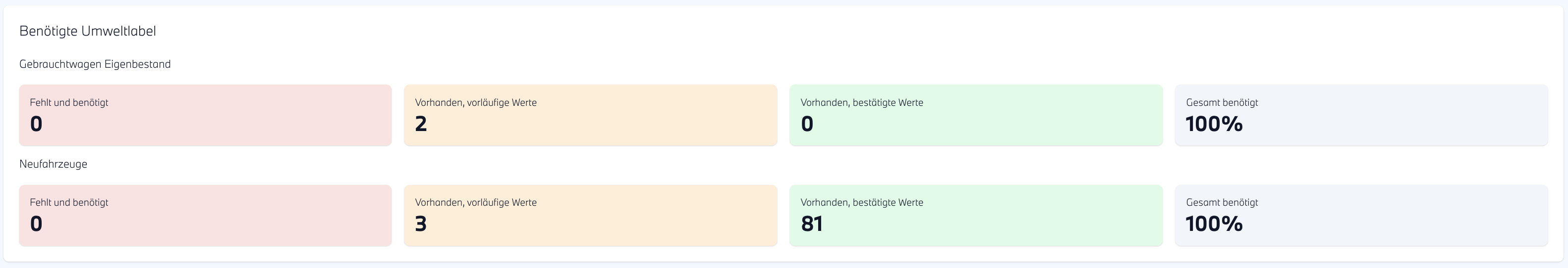 - Benötigte Umweltlabel, sehen Sie hier Fahrzeuge, die sich in dem roten Feld befinden "fehlt und benötigt", besteht Handlungsbedarf. PKW-Label