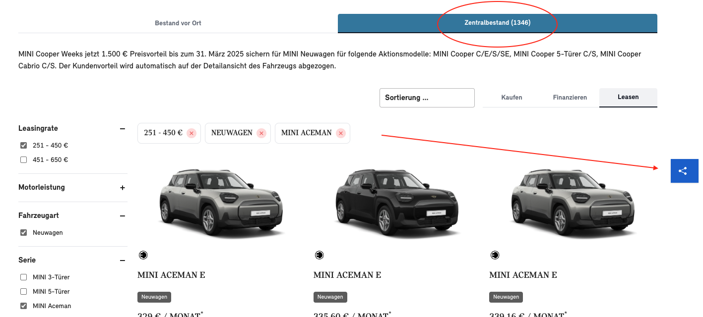 Wo landen die Anfragen für die MINI Agenturfahrzeuge?