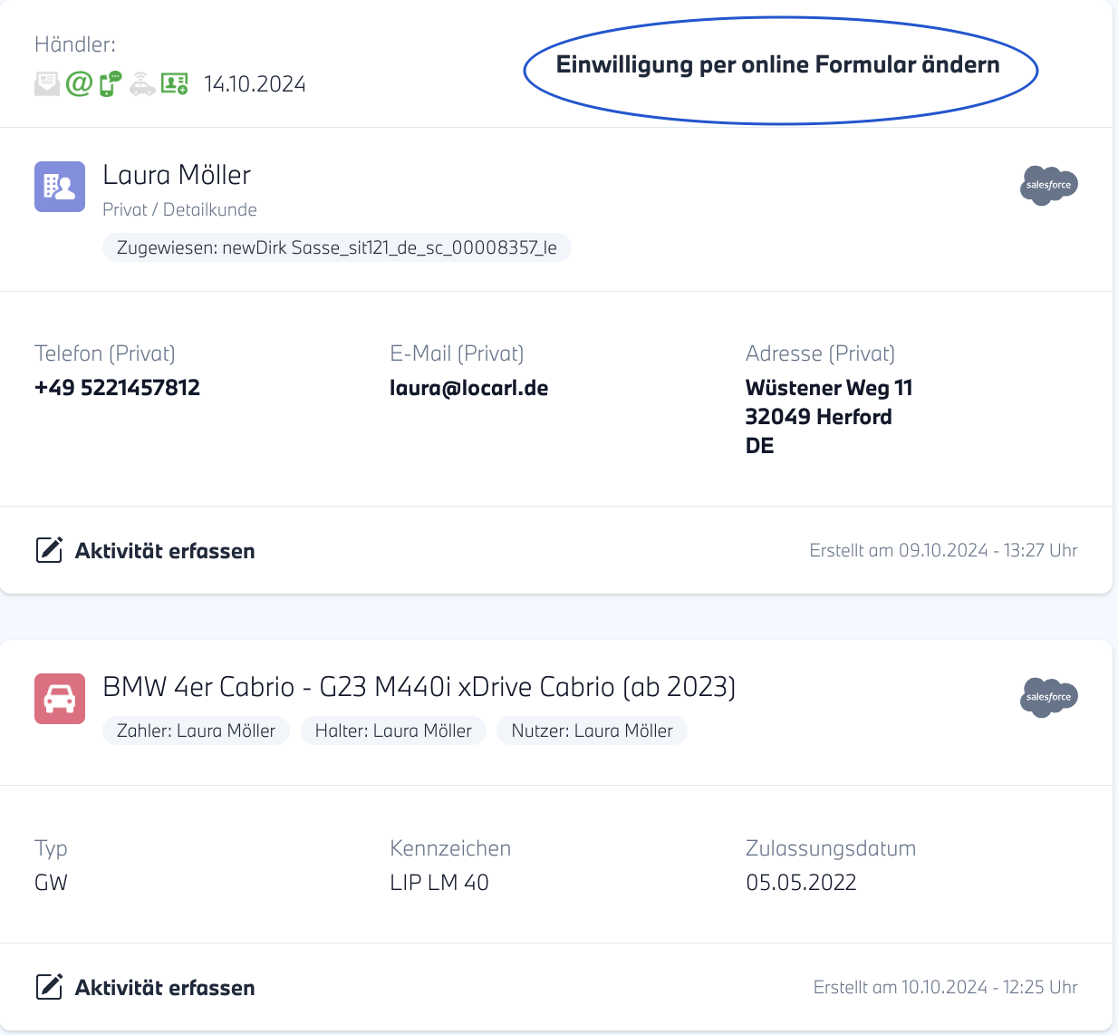 Auf diese Weise können Sie auch eine bereits vorhandene Einwilligung aktualisieren.