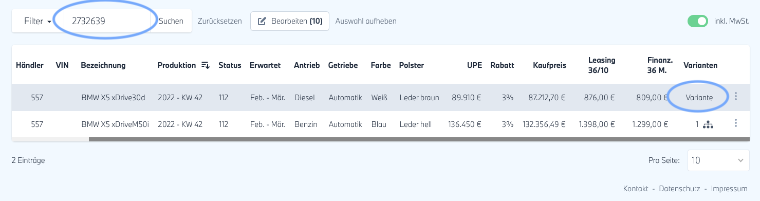 Mit den Varianten bietet Ihnen locarl die Möglichkeit, diese Verkaufschancen auf Ihrer Website noch weiter zu steigern und die Wahrscheinlichkeit zu erhöhen, dass Sie ein Fahrzeug verkaufen, bevor es auf Ihrem Hof eintrifft.