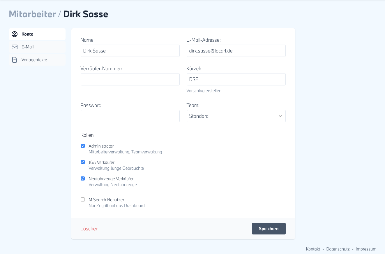 - Es öffnet sich die Ansicht “Mitarbeiter / Ihr Benutzername”