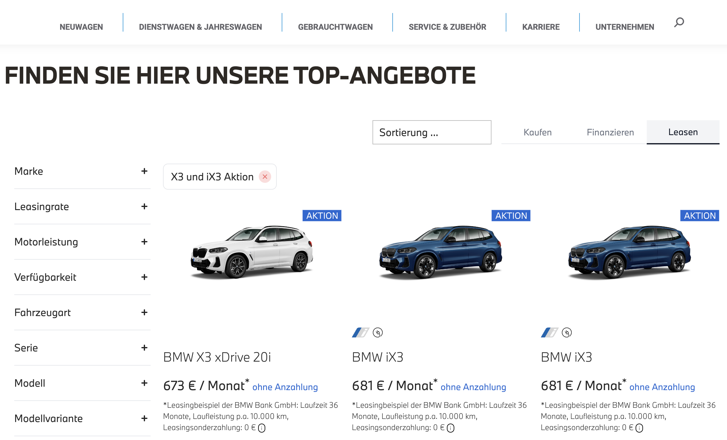 Das heißt, Sie können oben auf der Landingpage ein passendes Headerbild zu der Aktion einfügen, einen Text zur Aktion schreiben und anschließend direkt alle Aktionsfahrzeuge ohne einen weiteren Klick anzeigen lassen.