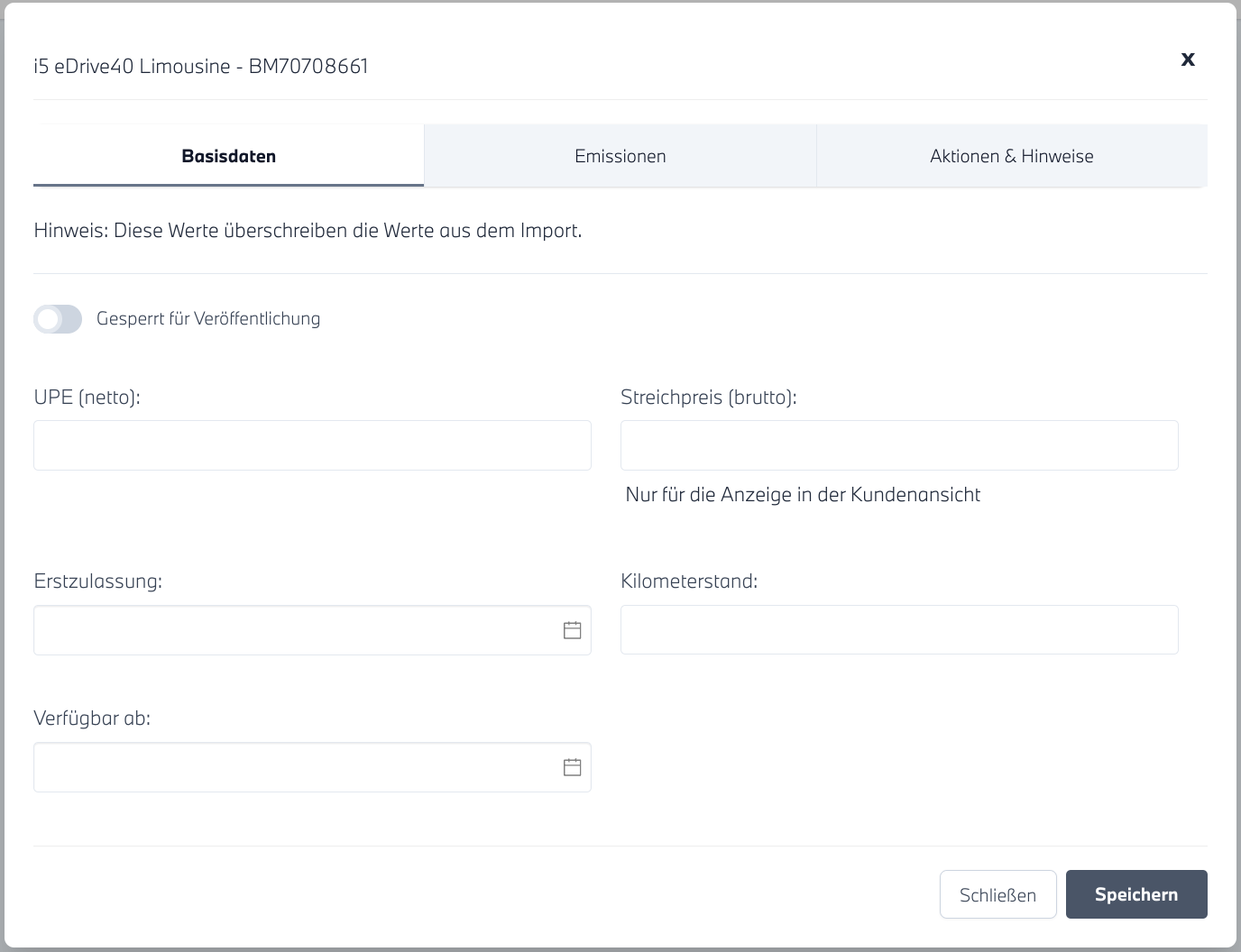 Die Daten zu ihrem Eigenbestand stammen aus ihrer Fahrzeugverwaltung. Daher können Sie hier z.B. nicht den Verkaufspreis ändern.
