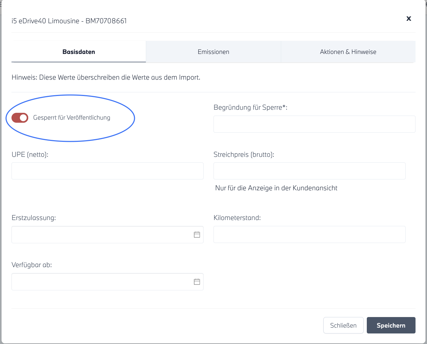 Ein möglicher Grund für die Sperre könnte z. B. sein, dass Sie so viele Anfragen für das Fahrzeug erhalten haben, dass Sie davon ausgehen, es in jedem Fall zu verkaufen. Durch die Sperre wird das Fahrzeug direkt auf TopRate.de deaktiviert, ebenso wie in der lokalen Darstellung auf Ihrer Webseite.