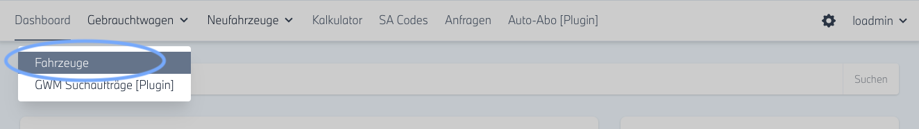- Klicken Sie nach dem Login auf "Gebrauchtwagen"