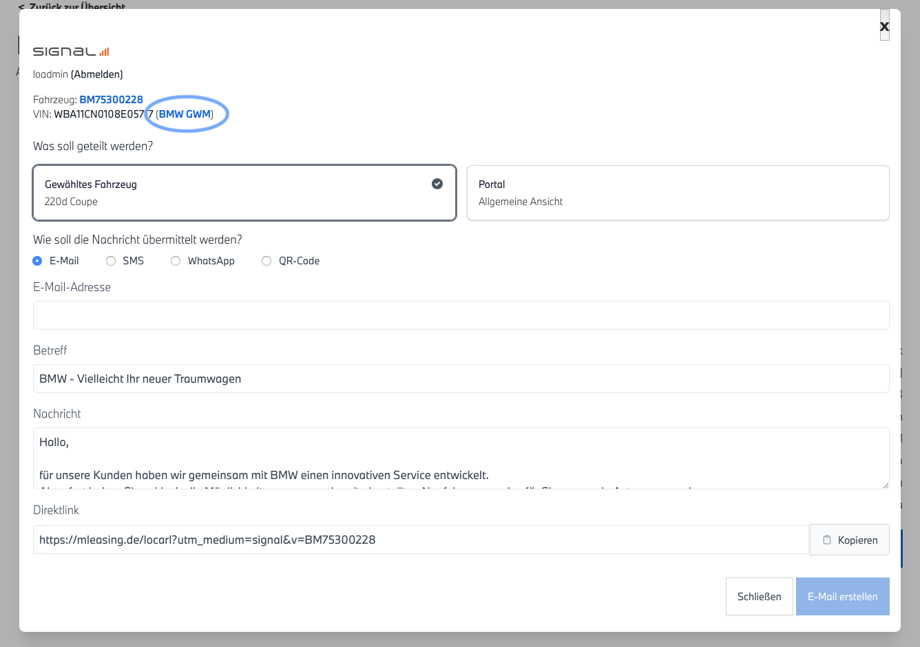 - Sie können das Fahrzeug außerdem auch direkt aus der "Teilen-Funktion" im GWM System öffnen.