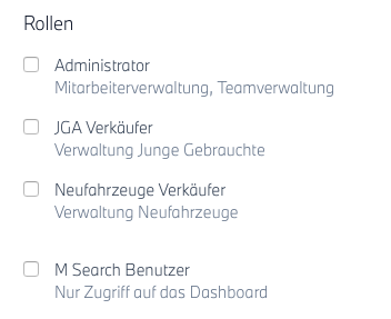 Erteilen Sie einem Mitarbeiter nur die Rolle “M Search Benutzer”, ist diese nicht mit einer der anderen 3 Rollen kombinierbar